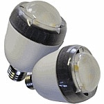 2-Les LED classiques d'un prix réduit ,à puissance limitée à quelques milliwatts. On les monte à plusieurs dizaines sur un support d'ampoule . Elles sont actuellement déjà disponibles en 12-24 continu ou alternatif ou 220 V avec tous les culots normalisés. .